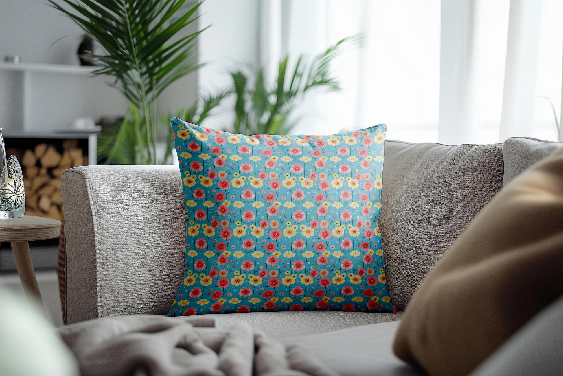 Cheerful Floral Fabric with Blue and Cream Backgrounds