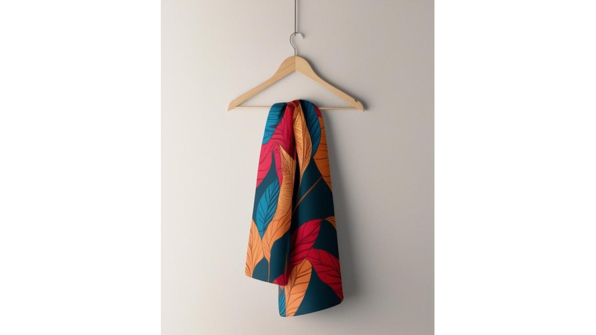 Add a pop of color to your wardrobe with this stylish scarf featuring a bold leaf pattern in shades of teal, orange, and red. Perfect for any season, this lightweight accessory drapes beautifully and brings a touch of nature-inspired elegance to any outfit. Ideal for casual wear or as a statement piece, it’s a must-have for fashion lovers who appreciate unique and eye-catching designs.