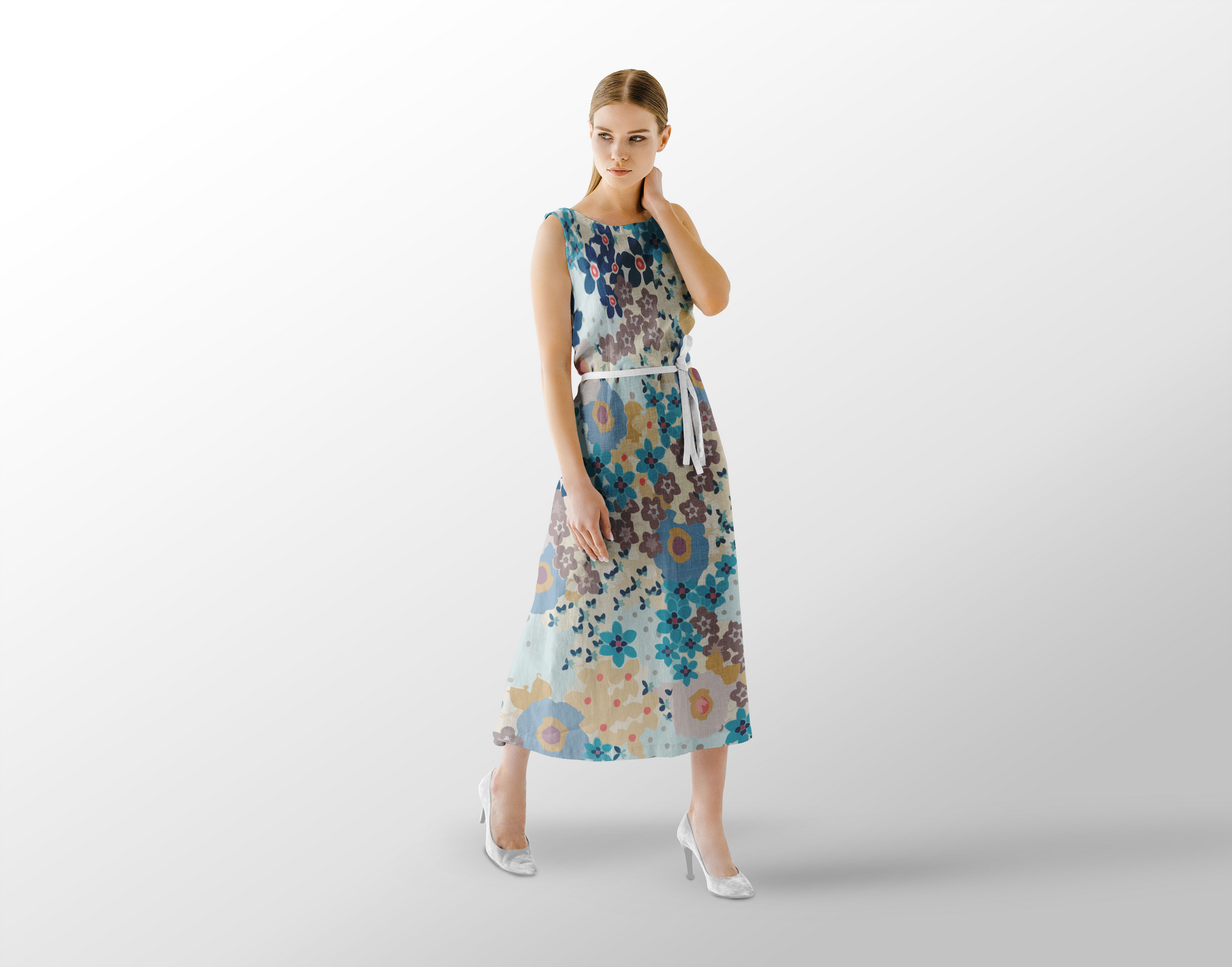 نمط زهري رقيق يضم عناقيد من الأزهار بدرجات الأزرق والبيج واللافندر والأزرق المخضر. يمزج التصميم بين ألوان الباستيل الناعمة واللمسات الجريئة، ليخلق تركيبة متوازنة وحيوية. مثالي للمنسوجات وورق الجدران والقرطاسية، ويضفي شعورًا بالانتعاش والأناقة الخالدة.