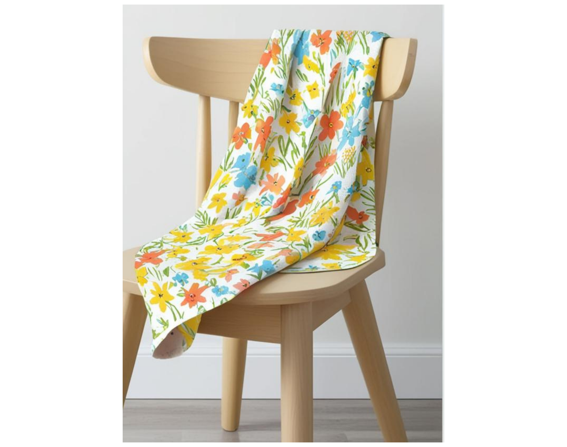 تصميم زهري نابض بالحياة، يتميز بمزيج من أزهار حمراء وصفراء وزرقاء وخوخية متناثرة على خلفية بيضاء. يُضفي هذا الترتيب الملون من الزهور البرية والنباتات الخضراء مظهرًا مبهجًا ومنعشًا ومرحًا، مثاليًا للمنسوجات وورق الجدران وورق تغليف الهدايا والمشاريع الرقمية الإبداعية.